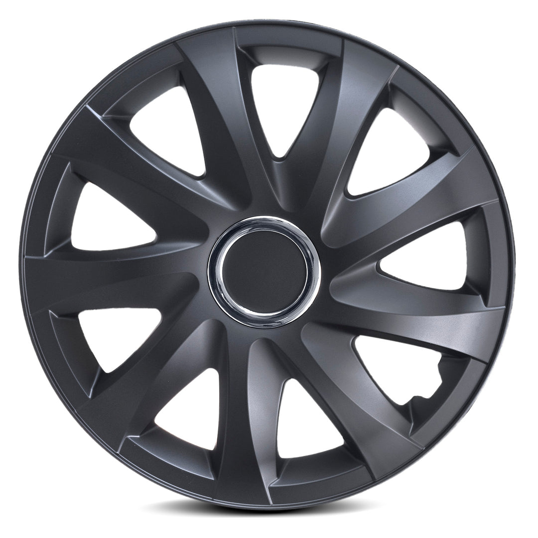 Universal Radkappen 14" DRIFT schwarzer Lack zum Aufdrücken 4 Stück