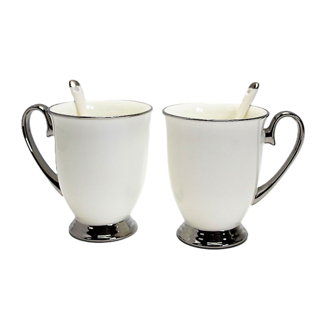 Weiße Becher 2pc Chrome Griffe, Teelöffel, Porzellan, Elegant, Königin Isabel