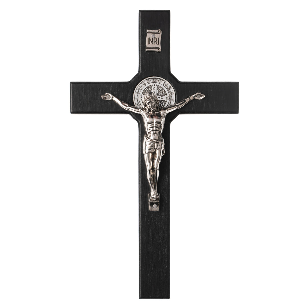Hängendes Kreuz des Heiligen Benedikt mit dem Passionskreuz Hängekreuz aus Buchenholz (Schwarz, 18x10x1,8cm) …