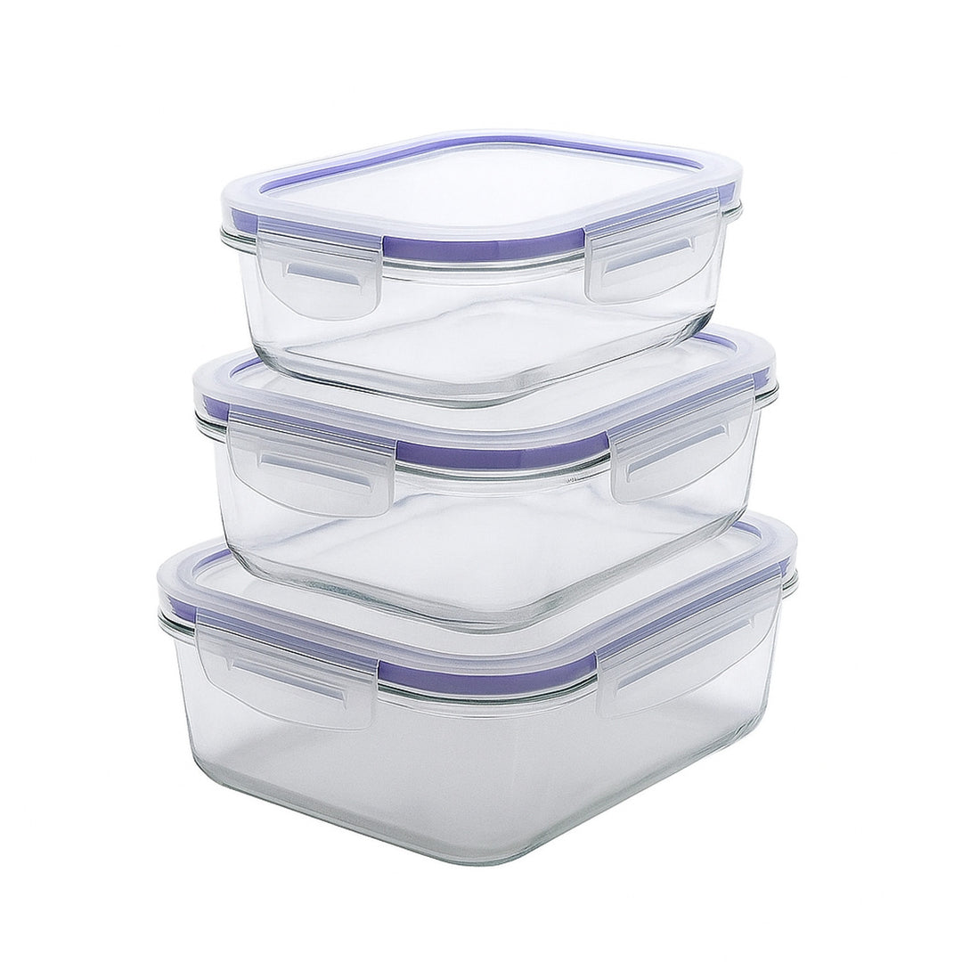 3er-Set Practic Lebensmittelbehälter, Inhalt 0,6, 1 und 2 l, Deckel mit Clips