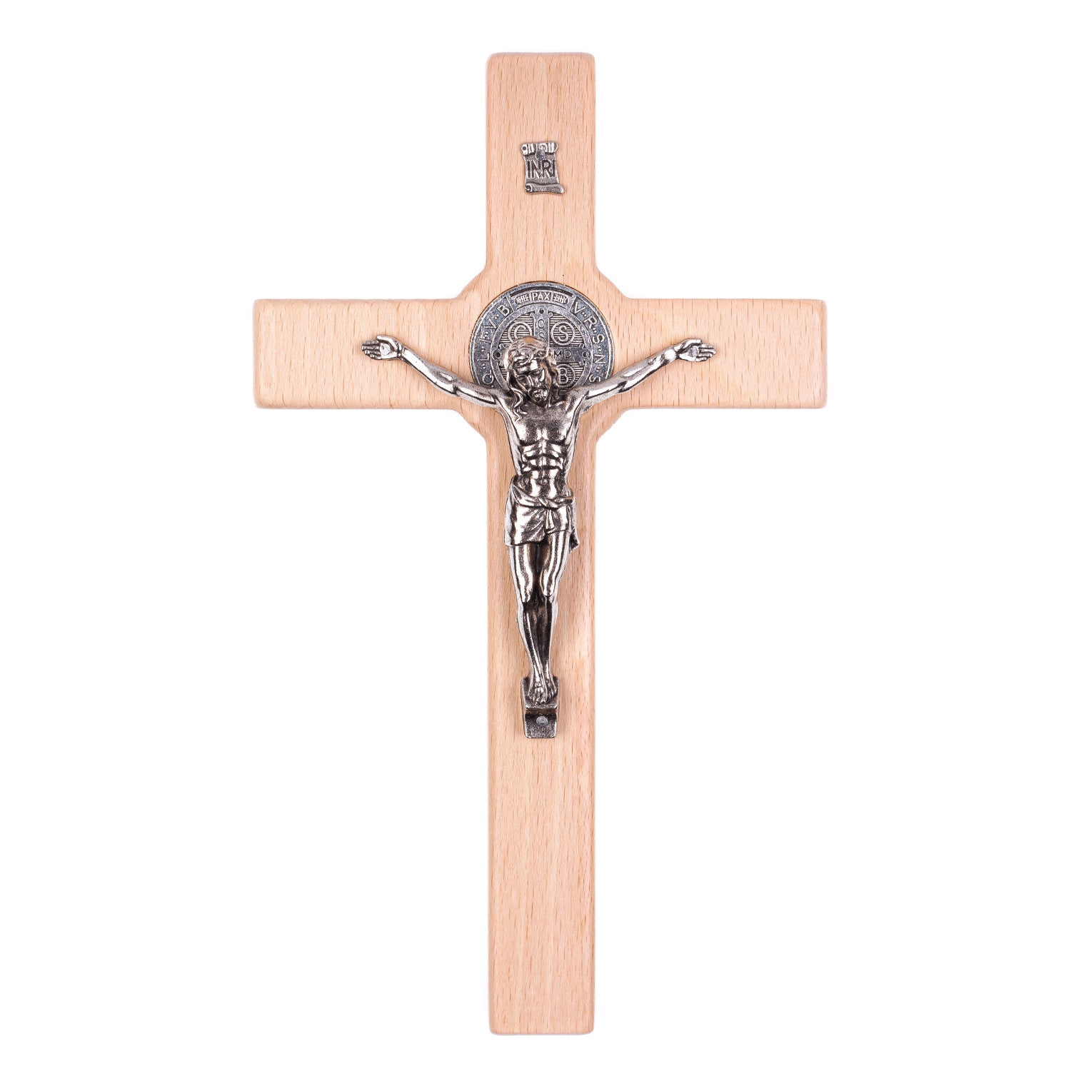 Das hölzerne, hängende Kreuz des heiligen Benedikt mit dem Passionskreuz natürlich 18x10x1,8 cm