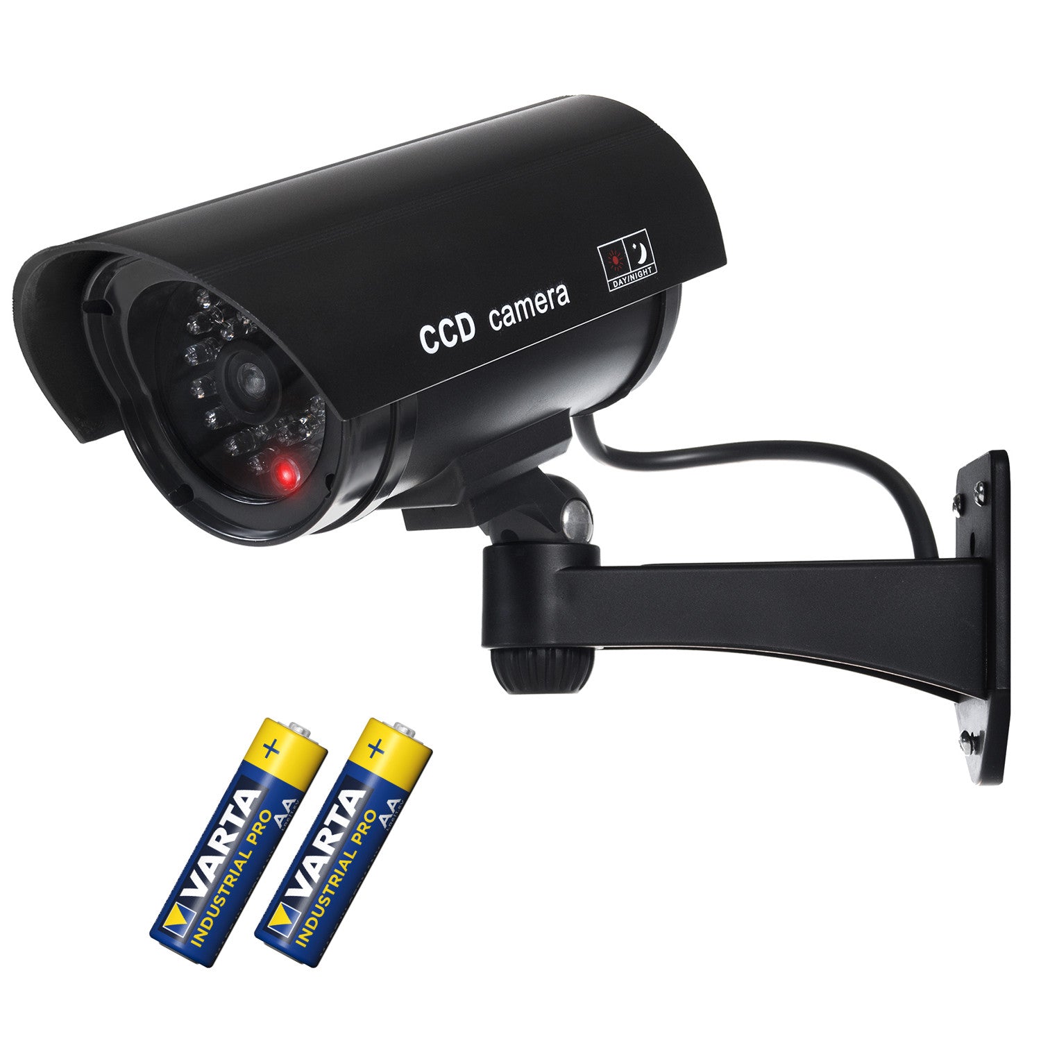 Kamera-Attrappe mit blinkender LED IR1100 B IR extern + 2x Varta Industrial AA Batterien