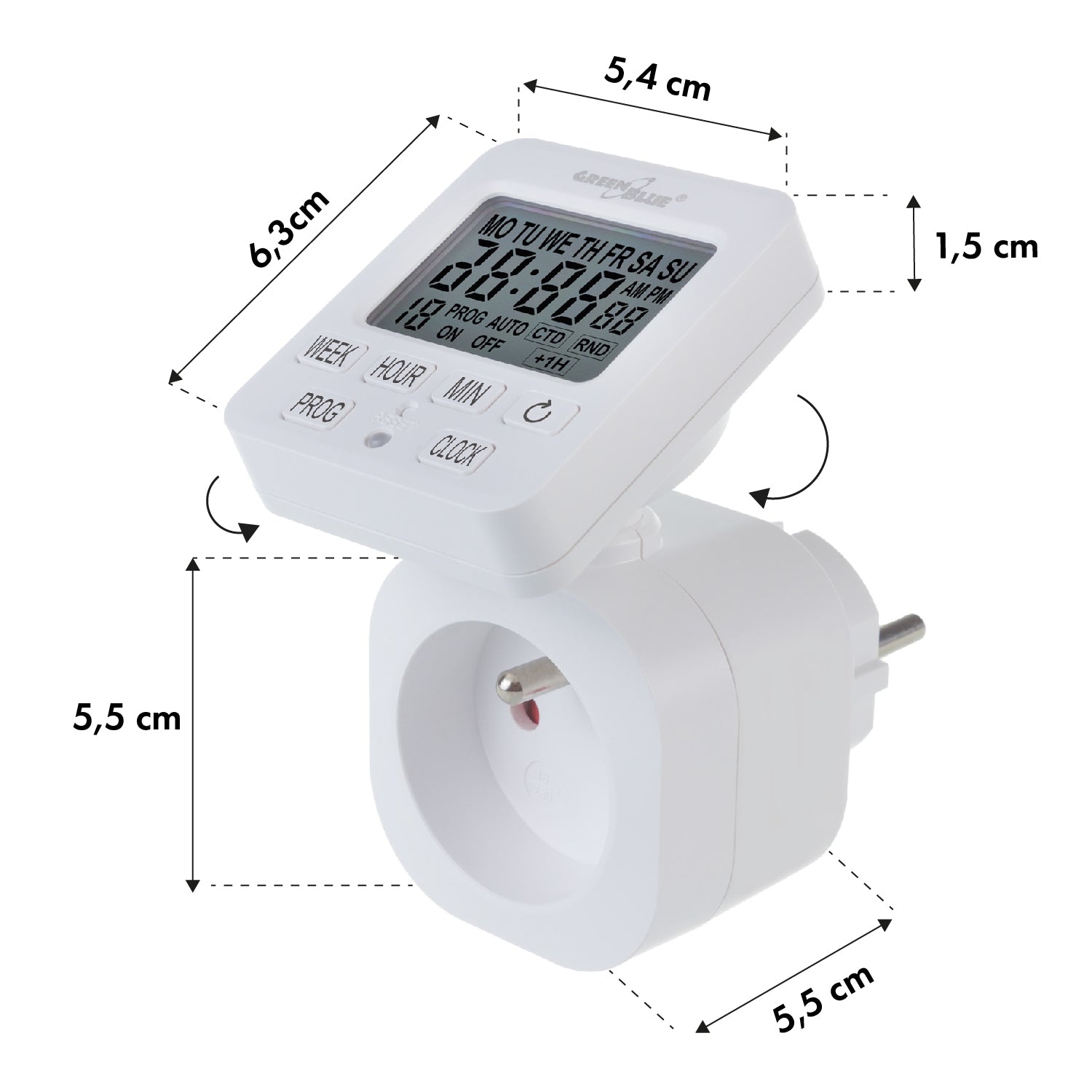 Die digitale Zeitschaltuhr GreenBlue GB605 ist ein unverzichtbares Werkzeug für alle, die Wert auf Energieeinsparung und Komfort legen. Mit ihr können Sie das Ein- und Ausschalten planen, Ihren Energieverbrauch kontrollieren und Ihre Stromrechnungen senken.