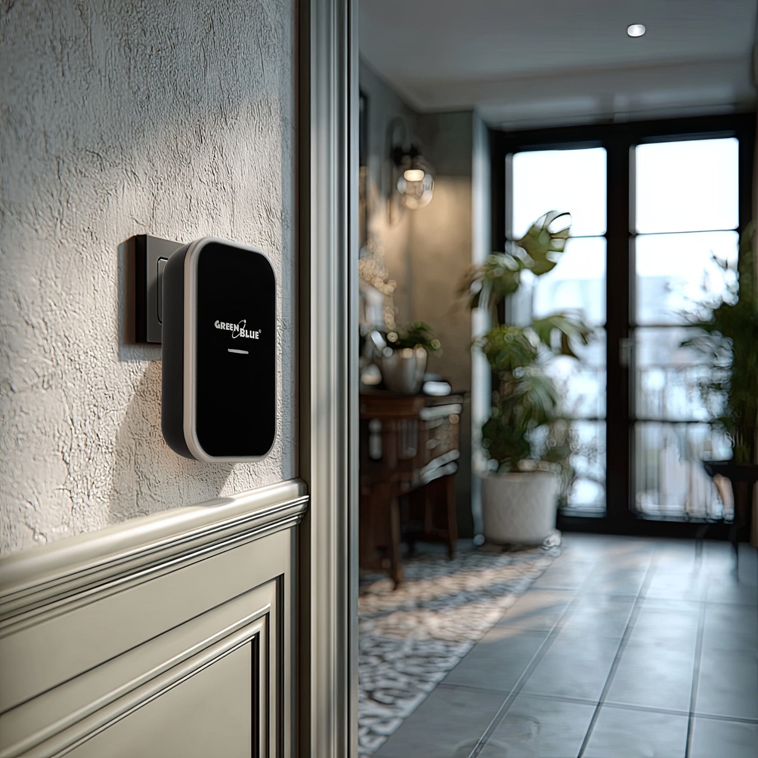 - Kompakte Türklingel mit kinetischem Sender und Steckdosen-Empfänger für uneingeschränkten Komfort