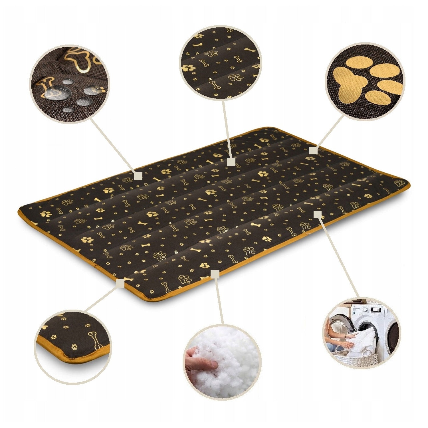 Prestige Hundebett Hundematte Haltbare wasserdichte Hundematratze mit einem Muster aus goldenen Knochen in Braun (120x80cm)