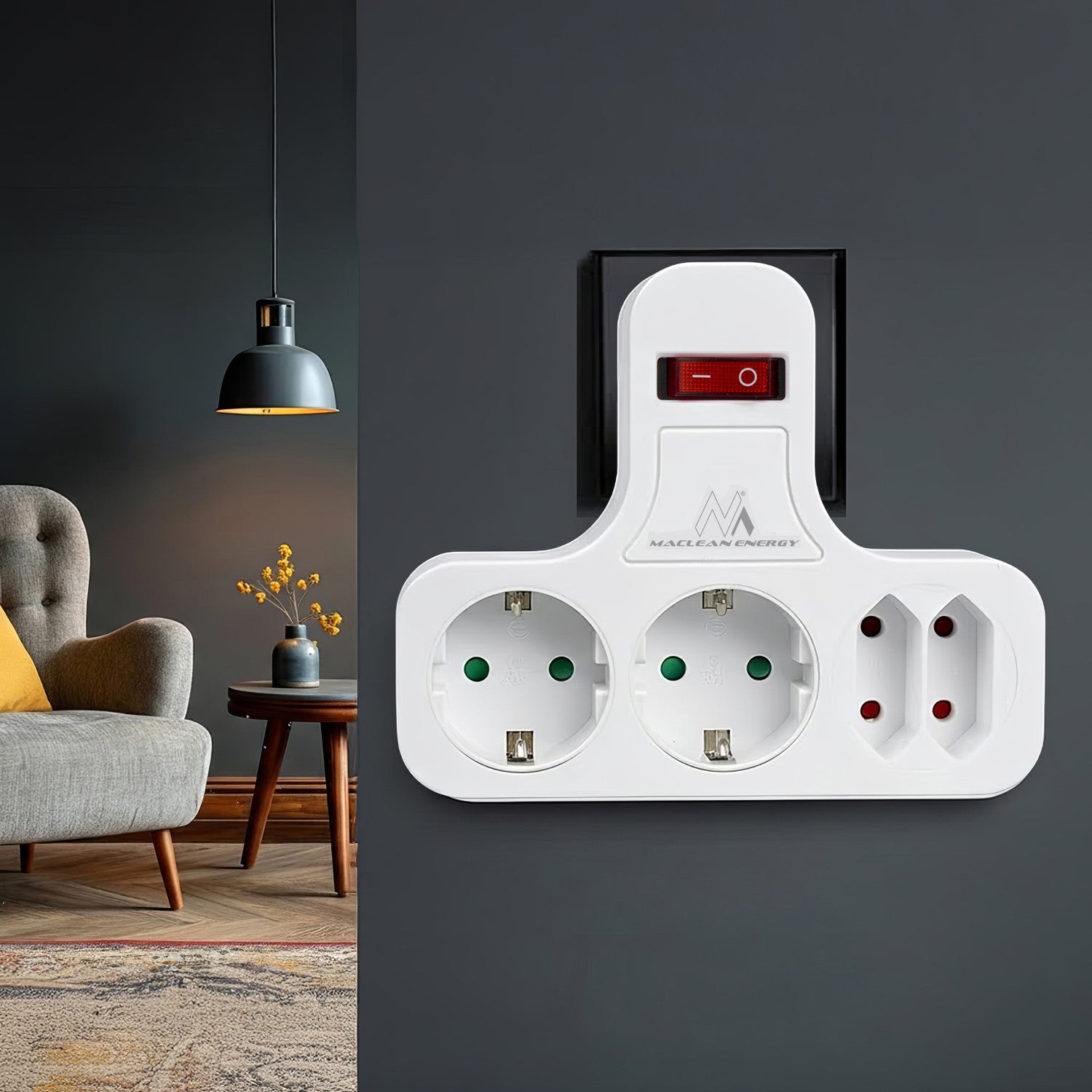 Maclean MCE224 Schuko Vierfach Schalter-Steckdose