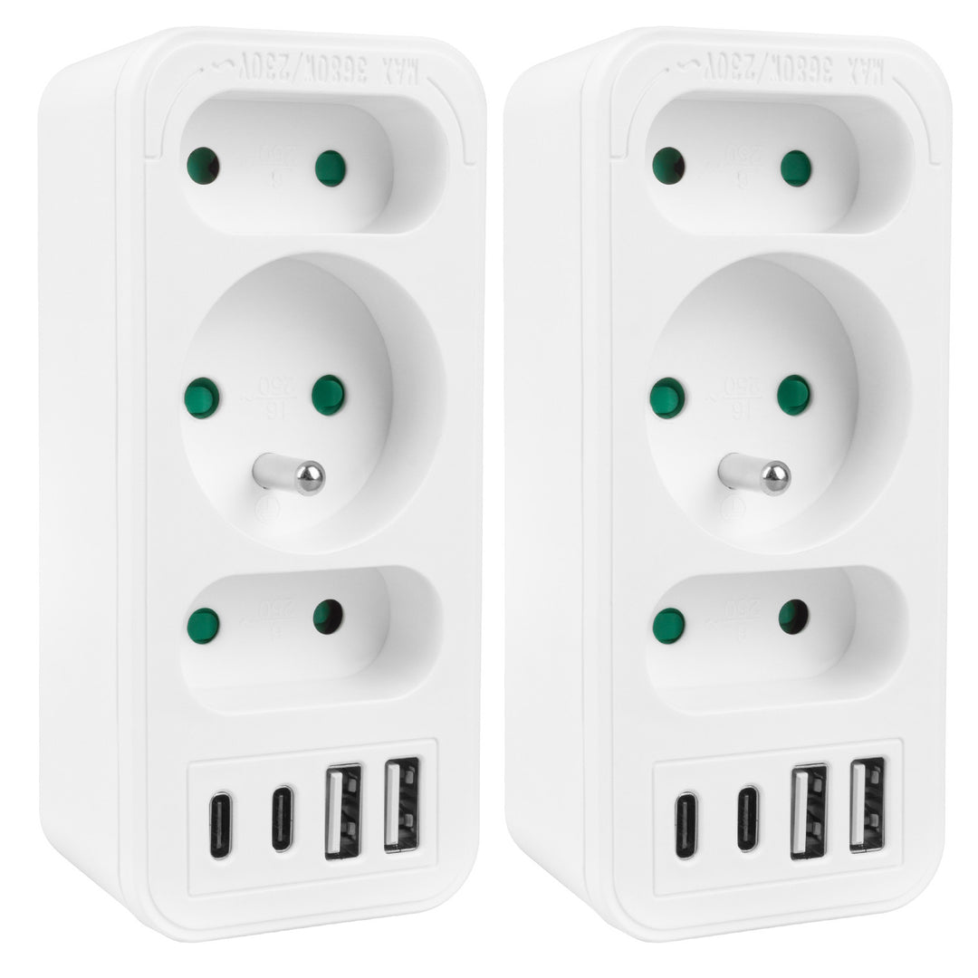 Maclean Stromsteckdose x2 + 4xUSB, Splitter mit 2 Steckdosen, 2xUSB A, 2xUSB C PD 20W, 1x16A + 1x6A, MCE249 F/W, 2 Stück