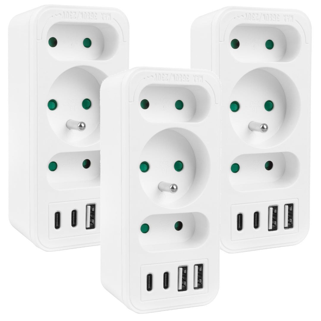 Maclean Stromsteckdose x2 + 4xUSB, Verteiler mit 2 Steckdosen, 2xUSB A, 2xUSB C PD 20W, 1x16A + 1x6A, MCE249 F/W, 3 Stück