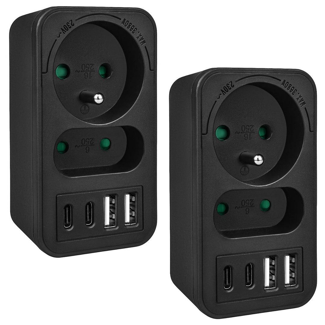Maclean Stromsteckdose x2 + 4xUSB, Splitter mit 2 Steckdosen, 2xUSB A, 2xUSB C PD 20W, 1x16A + 1x6A, MCE249 F/B, 2 Stück