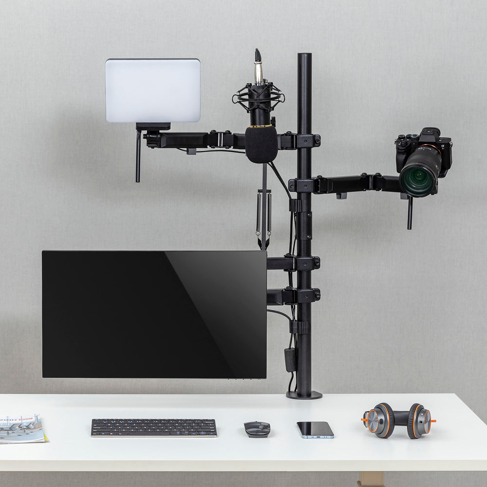 All-in-One Studio Professionelle Tischhalterung für 17-32" Monitor, Mikrofon, Kamera und Flutlicht Halterung für Studio StativVESA 75x75 100x100