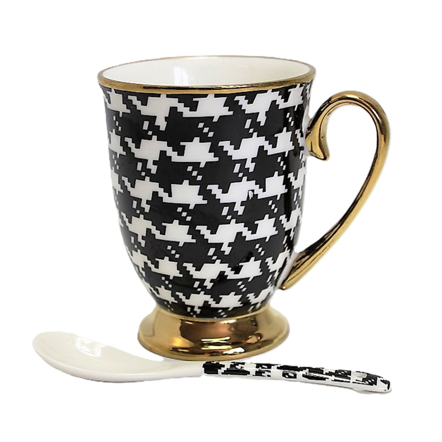 Becher Pepite Goldgriff Basis Löffel Porzellan Exklusiv, Königin Isabel