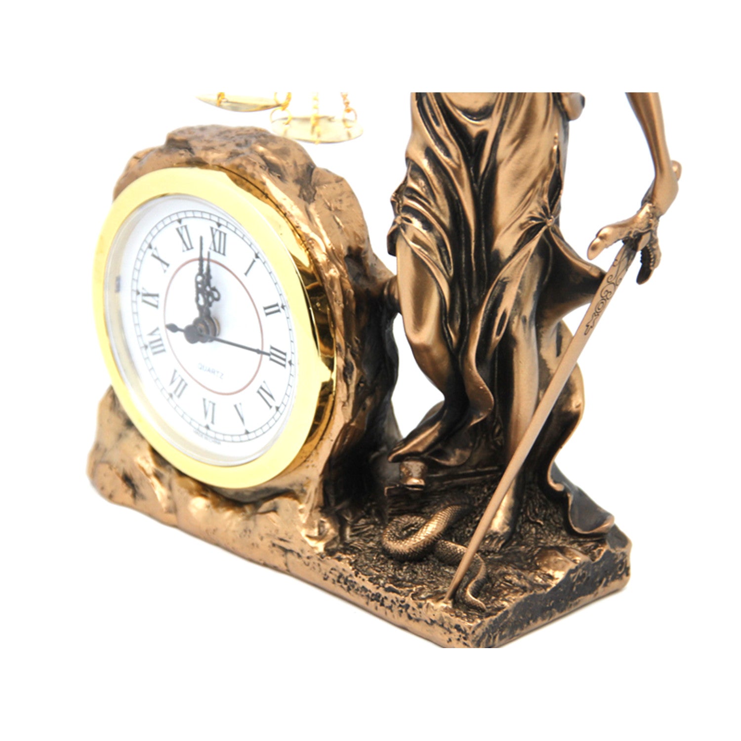 - Dekorative Uhr mit der Figur der Themis - ein Symbol der Gerechtigkeit, des Gleichgewichts und des Gesetzes