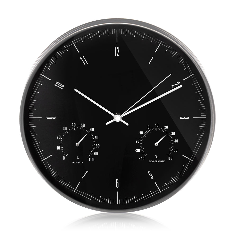 Wanduhr Wetterstation mit Hygrometer & Thermometer Silber