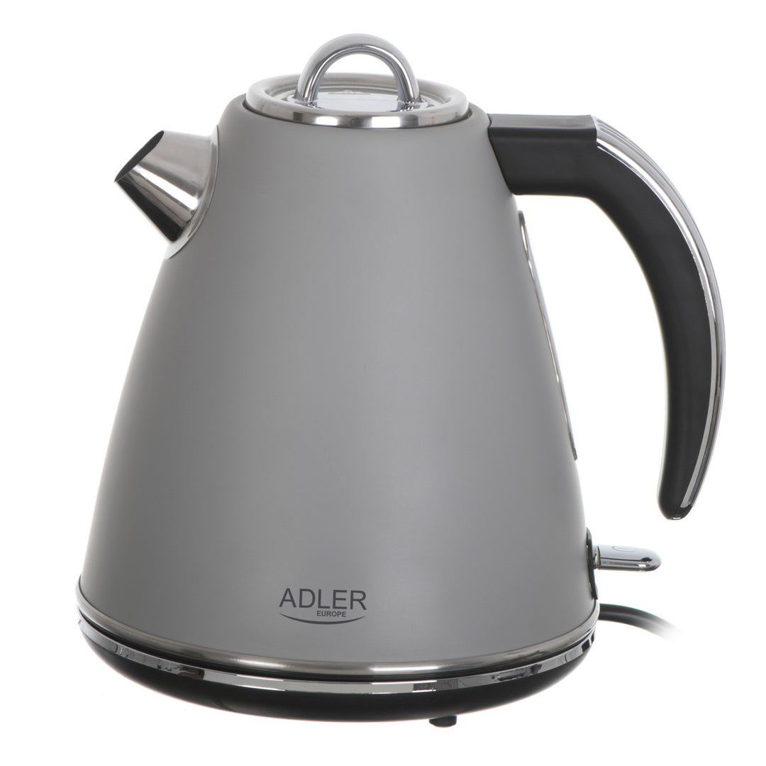 Elektrischer Wasserkocher aus Metall 1,5 L 2200W Retro Design Strix Sicherheitskontrollsystem Wasserstandsanzeige Edelstahlgehäuse 360° Basis Grau