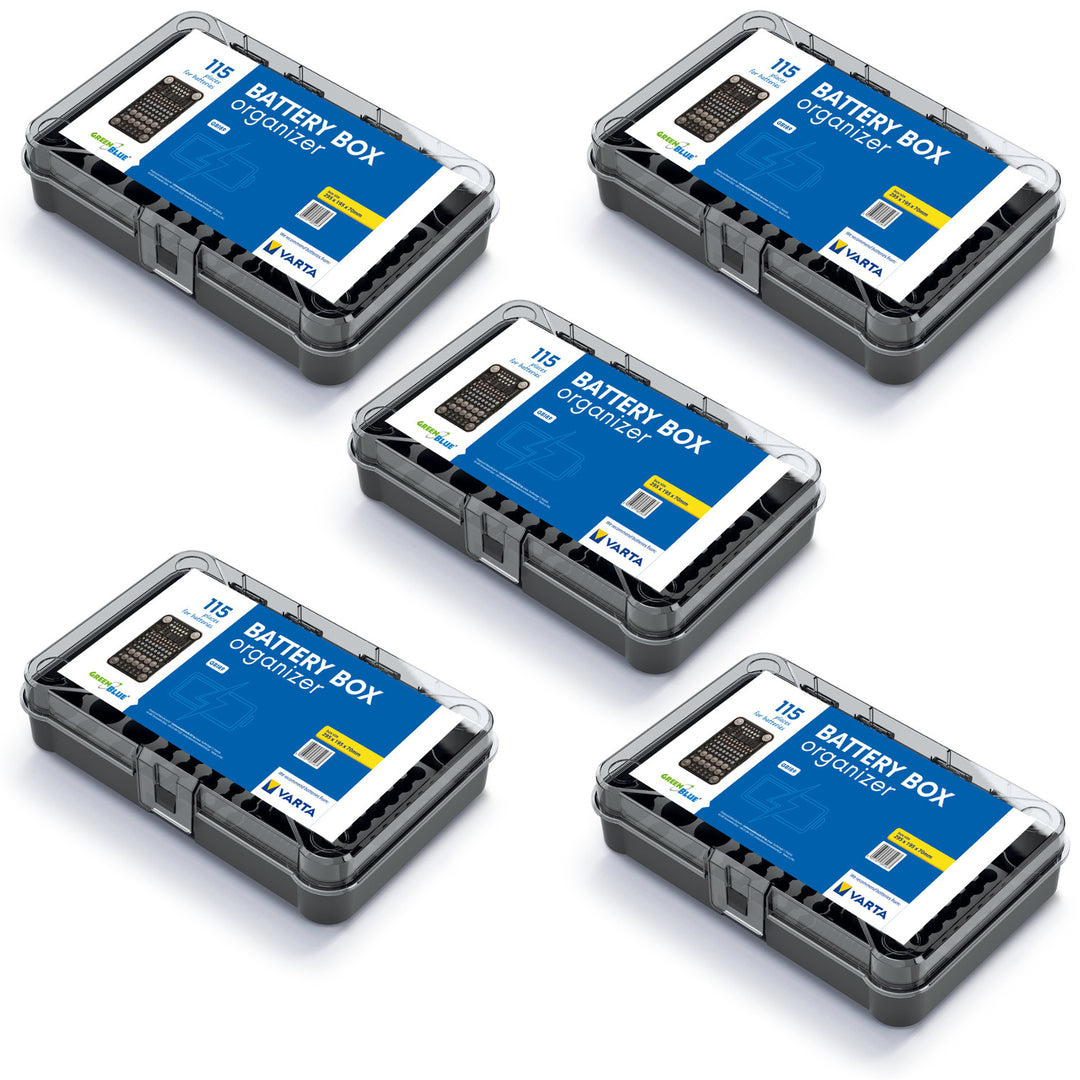GreenBlue Batterie-Organizer, klarer Deckel, 115 Plätze, Varta Box GB189, 5 Stück