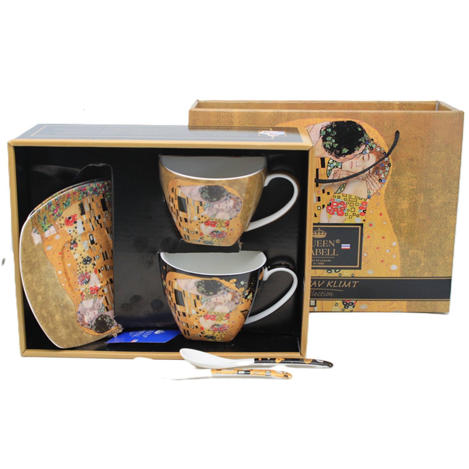 2er-Set Königin-Isabell-Porzellantassen, Klimt's Kiss-Motiv, Teelöffel, 250ml, W25KL60-2-19000