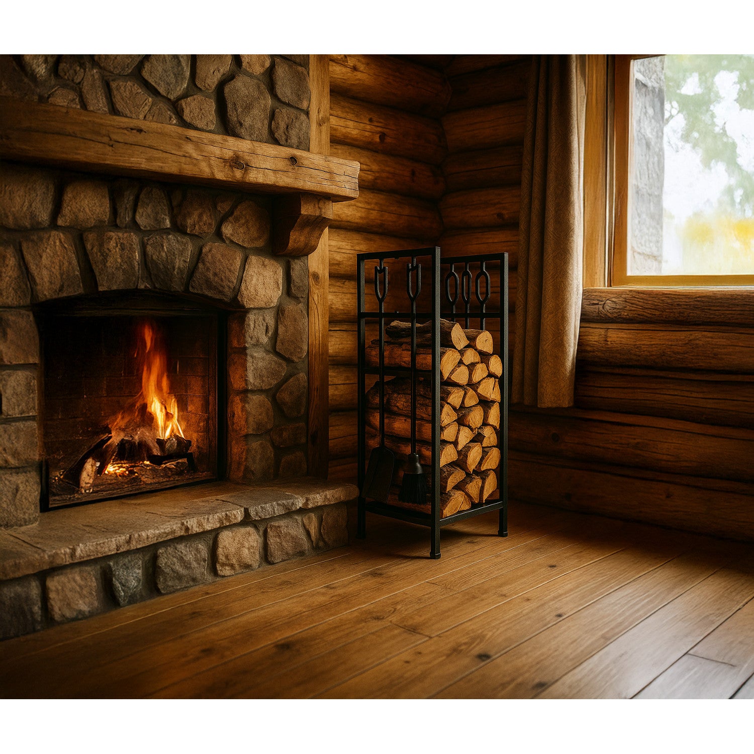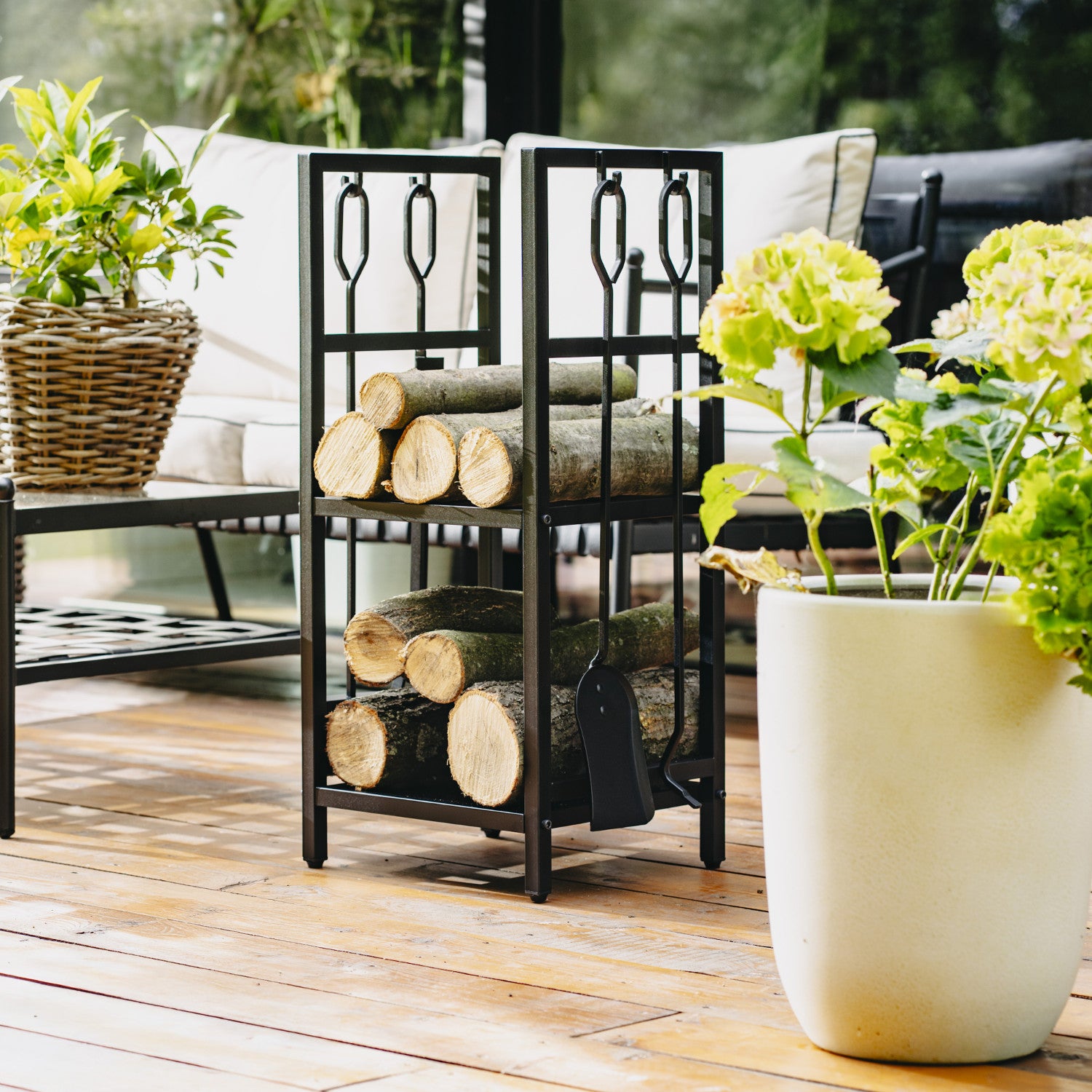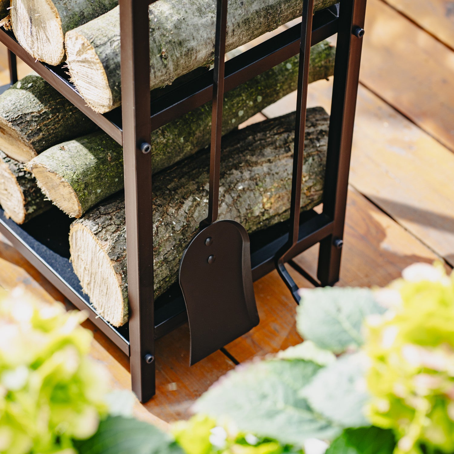- Kaminholzständer mit Werkzeugsatz