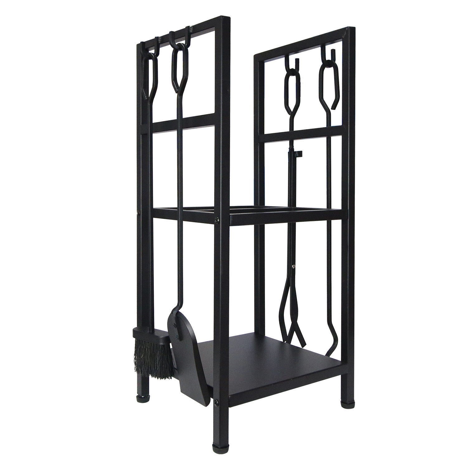 - Halterungen für 4 Werkzeuge: Schürhaken, Bürste (zum Abschaben kalter Asche), Schaufel, Zange