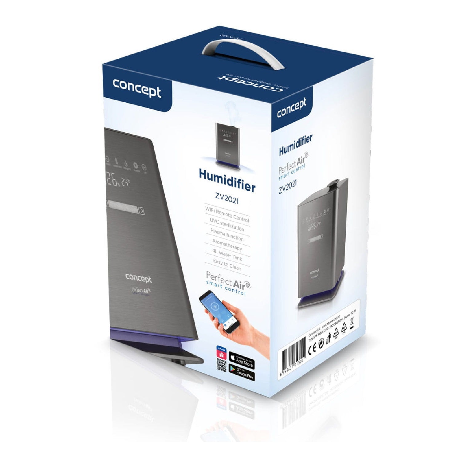 Einfach zu verwenden - Der Luftbefeuchter ist mit einem lesbaren LED-Touch-Display ausgestattet, das die aktuelle Luftfeuchtigkeit und Temperatur im Raum anzeigt und vor Wassermangel im Tank warnt. Sie können zwischen der Ausgabe von kaltem oder heißem Dampf wählen und seine Intensität und Luftfeuchtigkeit nach Bedarf anpassen. Alles, was Sie tun müssen, ist einen beliebigen Modus zu aktivieren, einschließlich des Timers mit einer Einstellung von bis zu 12 Stunden.Dank der mobilen App Concept Home, die sowohl für iOS als auch für Android kostenlos erhältlich ist, können Sie den Luftbefeuchter von überall und jederzeit steuern Verfolgung des aktuellen Klimazustands im Raum. Sie können auch die Fernbedienung verwenden.