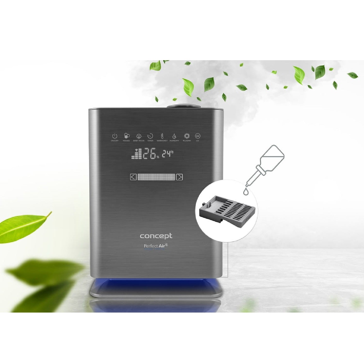 Mehr als ein Luftbefeuchter - Der Luftbefeuchter ZV2021 aus der Perfect Air-Serie ist eine Kombination aus Luftbefeuchter und Aromadiffusor. In Kombination mit einer UVC-Lampe und einem Plasma hilft es, schädliche Bakterien, Viren, Schimmel und Gerüche aus der Luft zu entfernen und hilft auch, die Luft im Haus sauber zu halten. Das moderne Design wird durch ein Touchpanel und blaue Hintergrundbeleuchtung unterstrichen. Dank des großen 4,6 l Wassertanks kann er bis zu 34 Stunden arbeiten. Wenn kein Wasser vorhanden ist, schaltet sich der Luftbefeuchter automatisch aus.