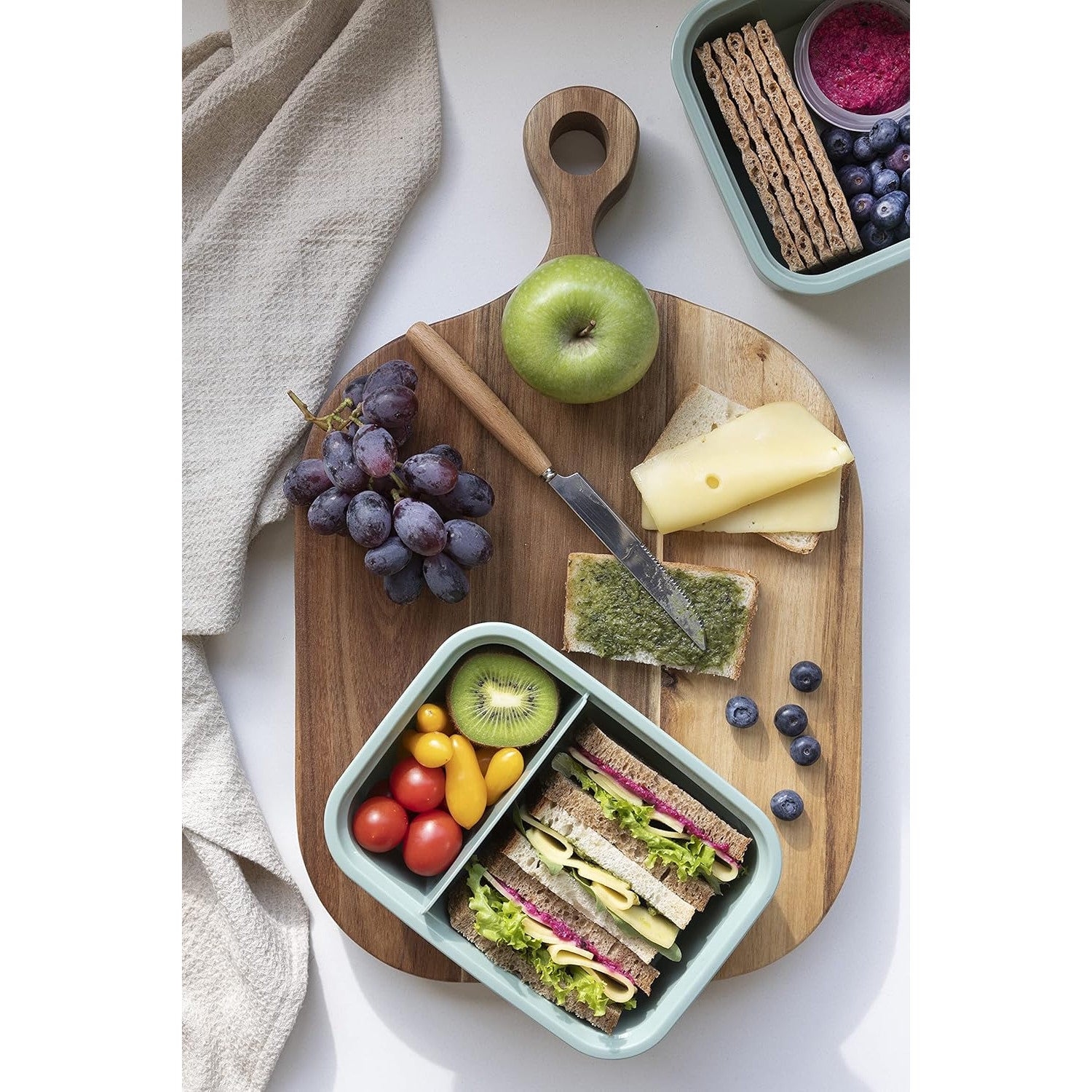 Dual Curver Lebensmittelbehälter, auslaufsicherer Deckel, Ventil im Deckel, 100% recycelt, mikrowellengeeignet, zwei Fächer 0,6L + 0,3L, 250000