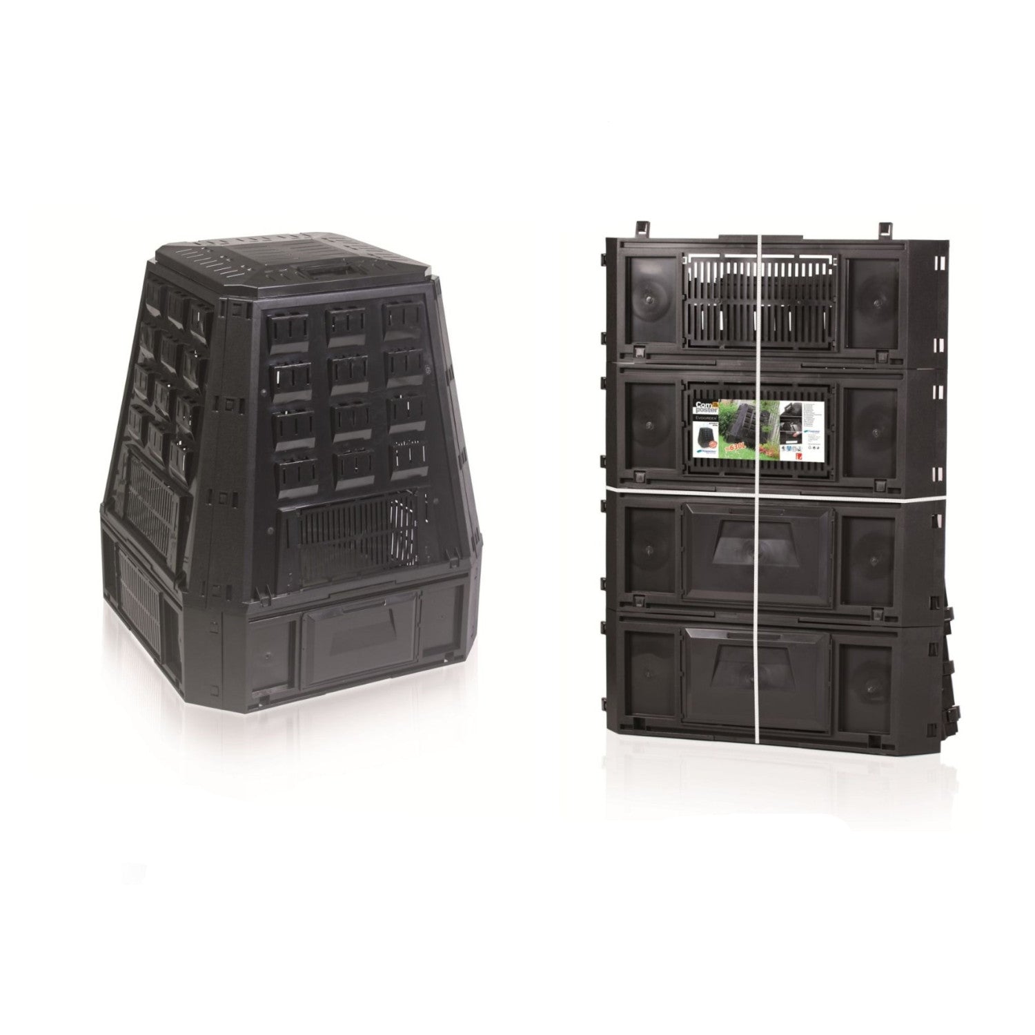Evogreen Komposter Gartenkomposter mit Abdeckung Schiebeklappe Luftzirkulation 630L Schwarz