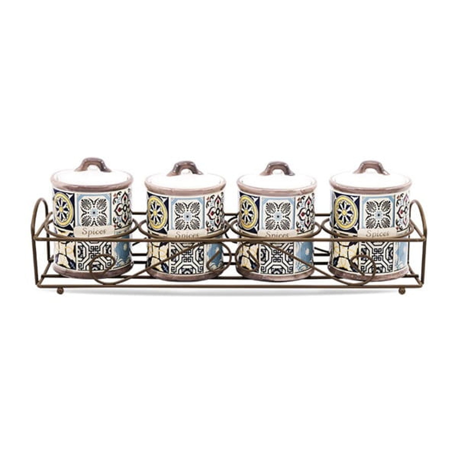 Holiday in Porto Maestro Keramikbehälter-Set, 5 Stück, 200ml Fassungsvermögen, ideal für Gewürze, mit Metallständer, MR-20005-04CS