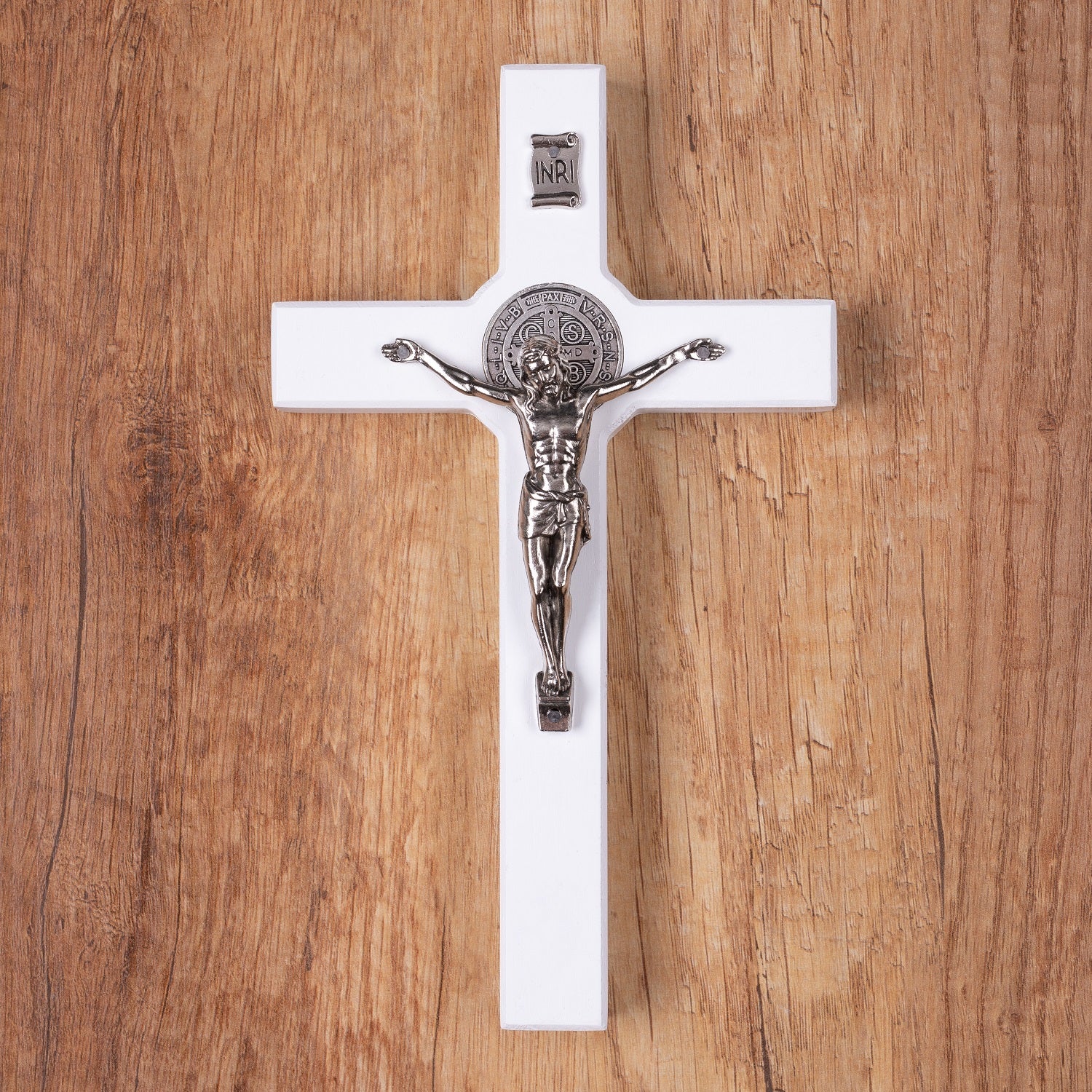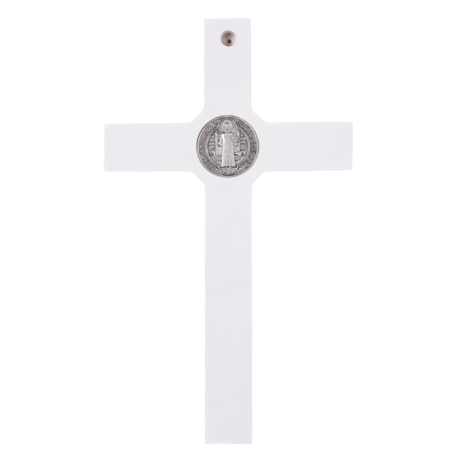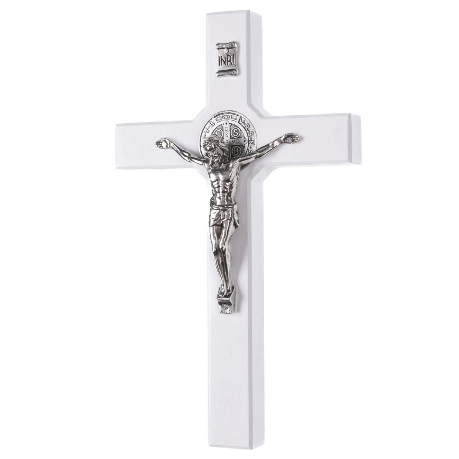 Holzkreuz von St. Benedikt hängend weiß 22x12x1.8cm