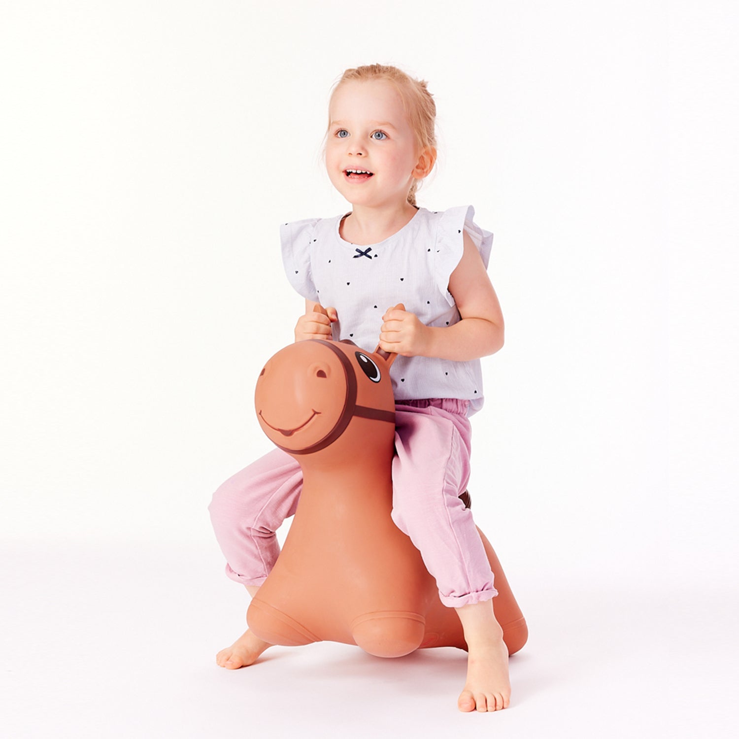 Hoppimals Hüpftier, Hüpfpferd, Für Gymnastik & Geschicklichkeit für Kinder, Inklusive Pumpe - Baby-Hüpfer, Braun