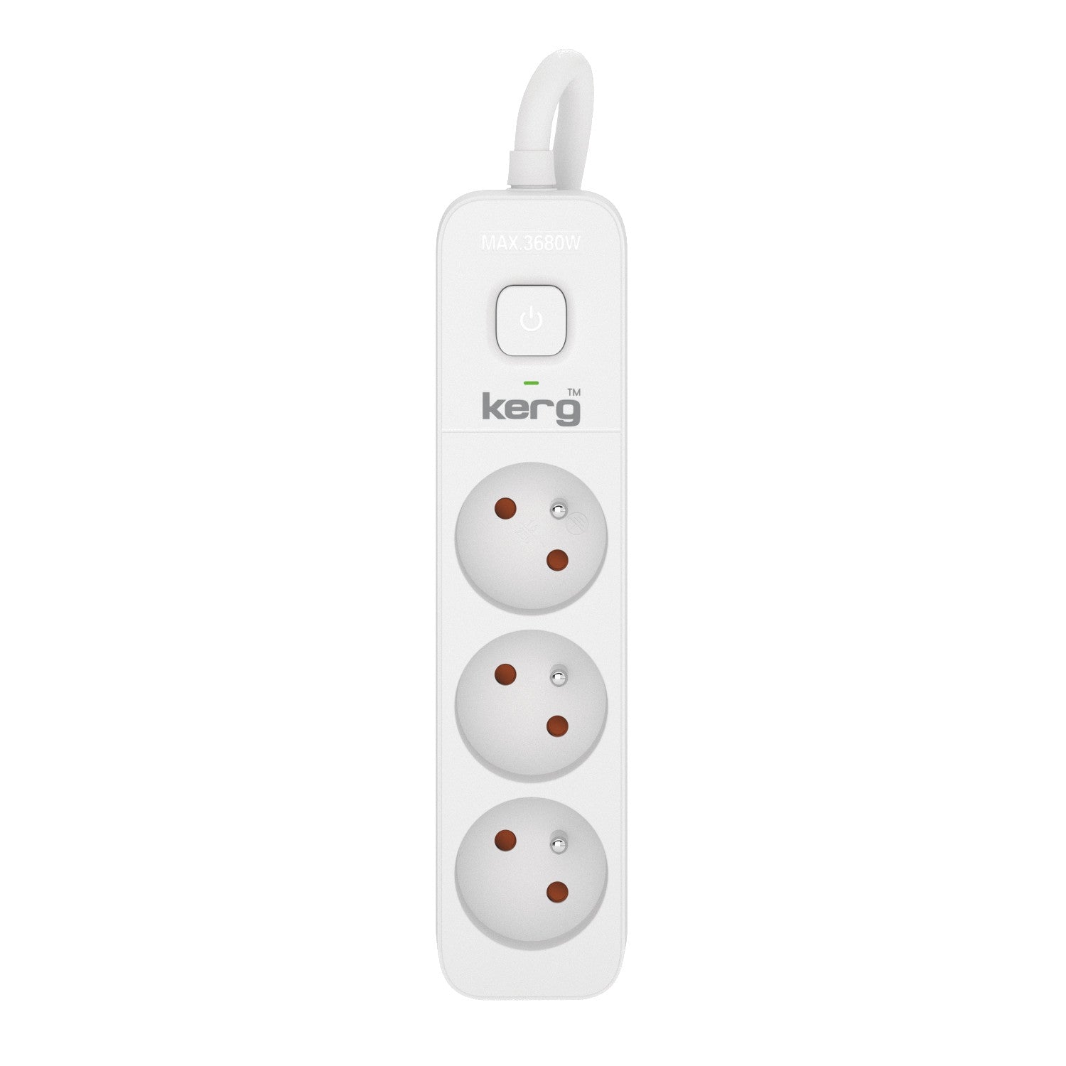 KERG Verlängerungskabel mit Schalter 3 Steckdosen weiß-grau 3m 16A H05VV-F 3x1,5mm2