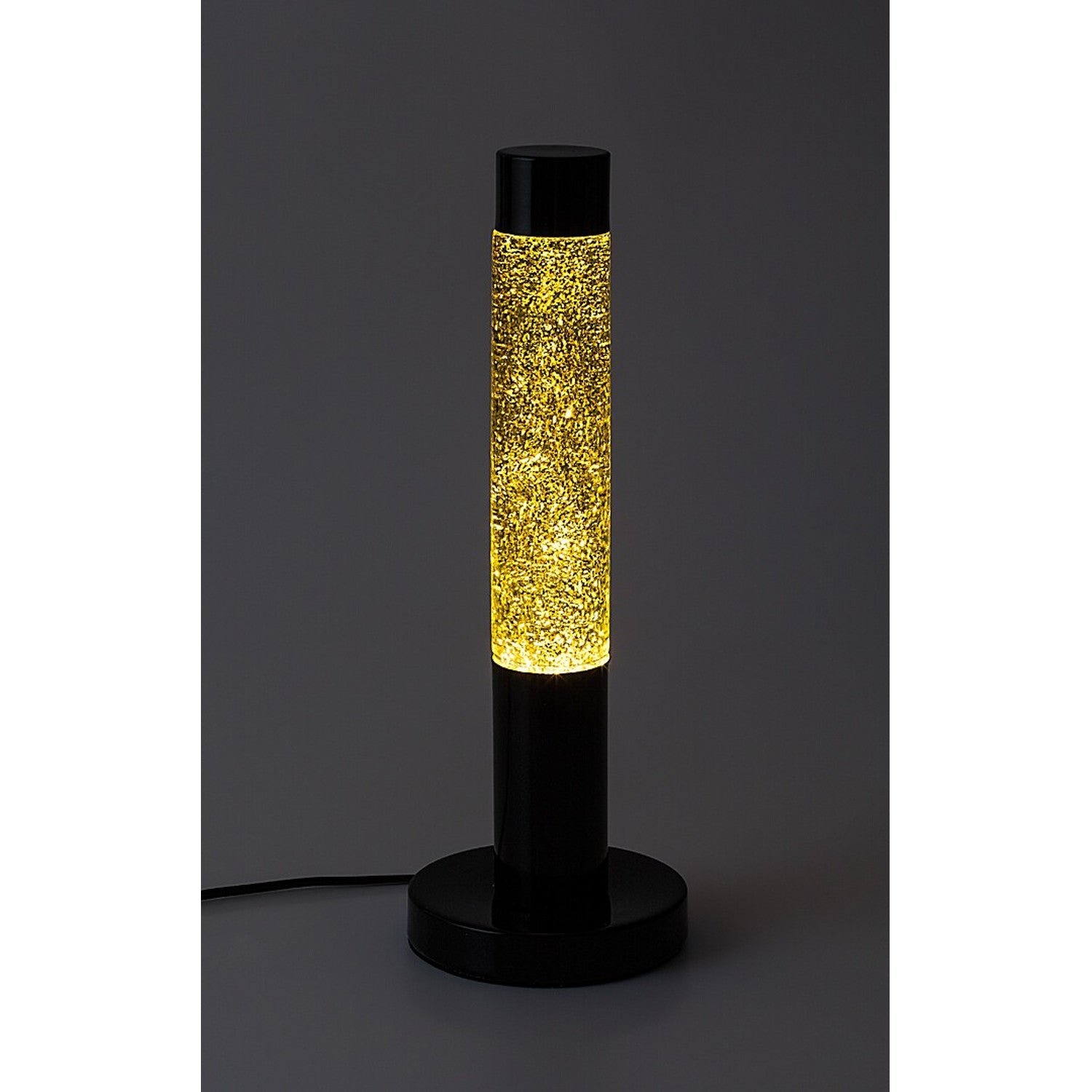 Die dekorative Rabalux Lavastic-Lampe ist die perfekte Wahl für alle, die eine spektakuläre und elegante Stimmungsbeleuchtung suchen. Das Innere der Lampe ist mit einer vergoldeten, sich ablösenden Flüssigkeit gefüllt, die diesem Modell ein helles, festliches Aussehen verleiht. Der zylindrische Körper und der dekorative, scheibenförmige Sockel sind aus schwarzem Metall gefertigt, während der Lampenschirm aus klarem Glas besteht.