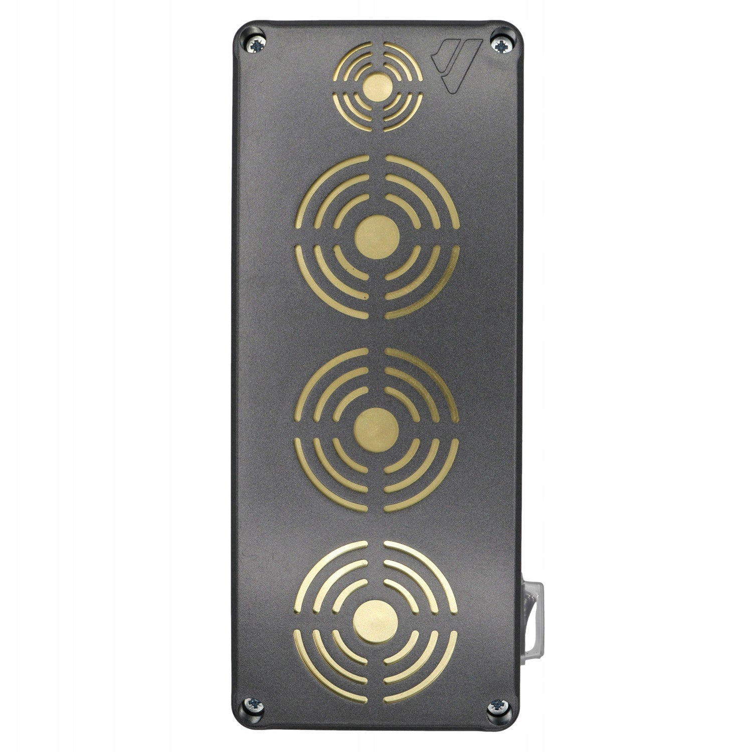 Das Gerät arbeitet mit leistungsstarken Piezo-Lautsprechern aus Messing, die zusätzlich durch ein Gitter geschützt sind. Piezo-Lautsprecher aus Messing zeichnen sich durch ihre hohe Widerstandsfähigkeit gegen Faktoren wie niedrige und hohe Temperaturen und Feuchtigkeit aus. Gewöhnliche schwarze Membranlautsprecher, die in anderen Geräten verwendet werden, sind strukturell anfällig und können Kurzschlüsse in der Anlage verursachen. Darüber hinaus ist das Fehlen von Gittern bei dieser Art von Geräten eine Gefahr für zufällige mechanische Beschädigungen der Geräte.