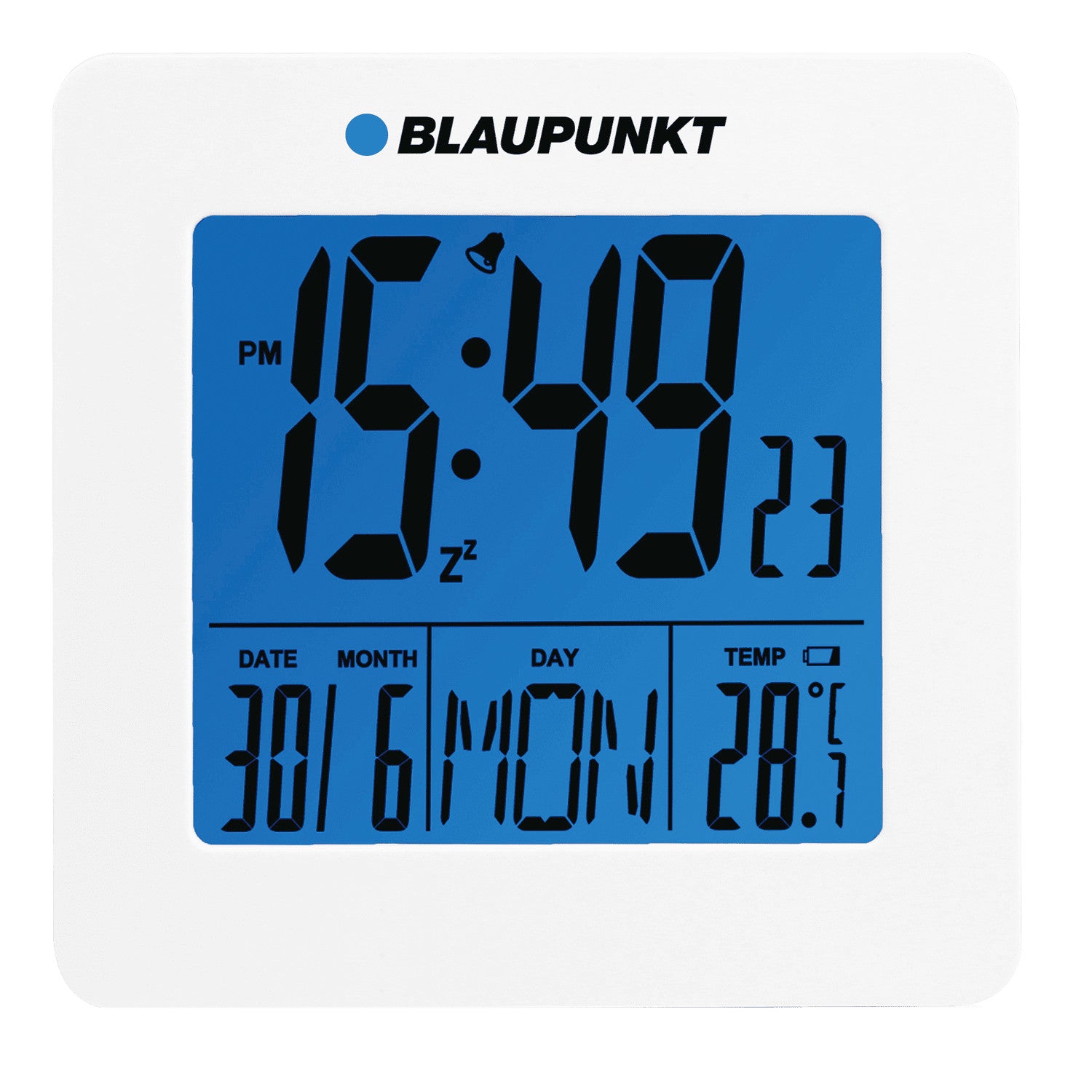 Wecker mit LCD-Display Thermometer mit Temperaturspeicher Datum, Uhr weiß